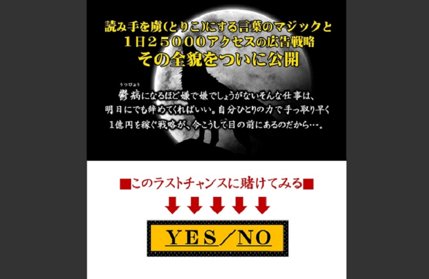 好きなことを仕事にしてサラリーマンの何十倍も稼ぐ、そんな最高の贅沢を満喫できる“一匹狼”のライフスタイルを一緒に手に入れようじゃありませんか。