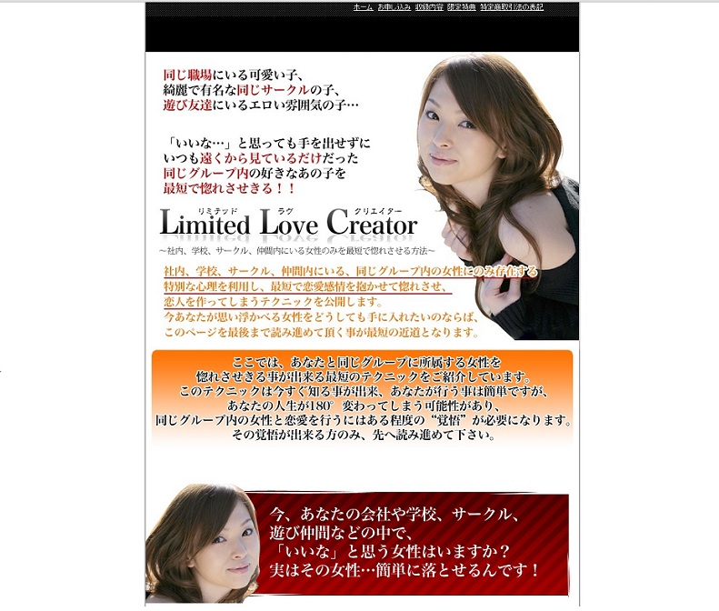 僕の『Limited Love Creator〜社内、学校、サークル、仲間内にいる女性のみを最短で惚れさせる方法〜』