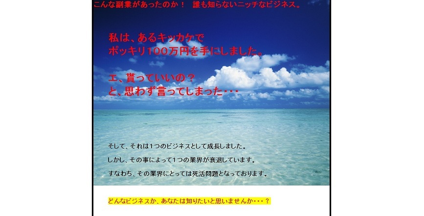 誰もが出来ない地域限定のビジネスをあなたは、手に入れる事が出来ます。
