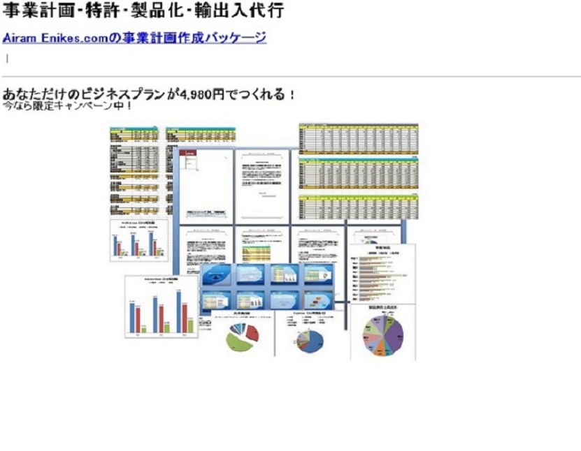 事業計画作成パッケージは、ビジネスがきまっているけど時間のない、会計関連の計算が苦手、あまり費用をかけたくないけど、とにかく自分の事業計画書を創ってみたいという方向けのカスタムパックです。あなただけのオリジナルビジネスプランを作成してください。
