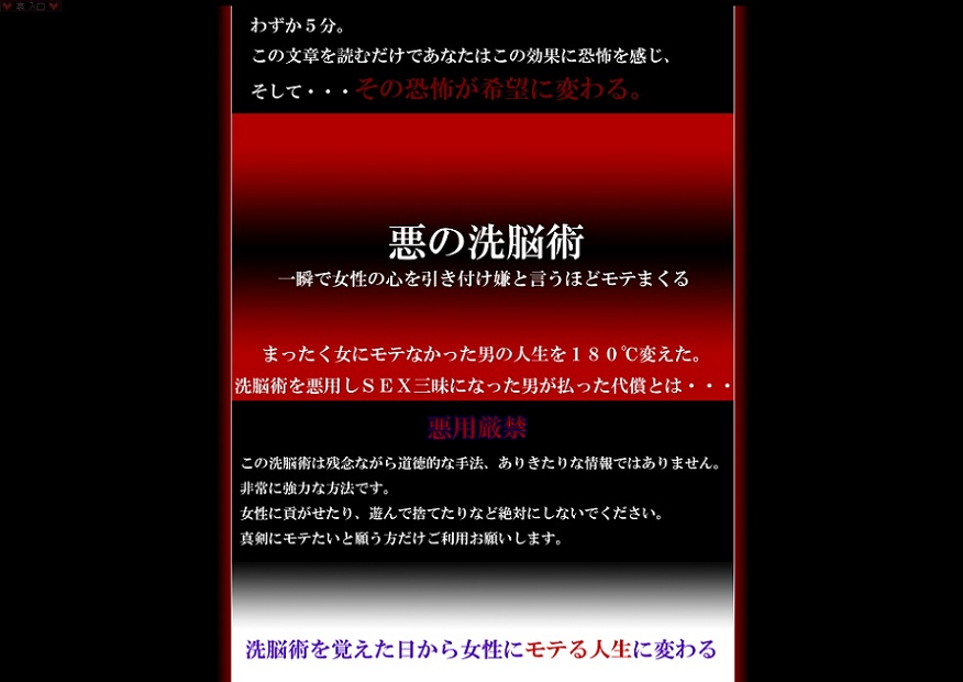 『悪(ワル)の洗脳術』こちらで悪(ワル)の洗脳術をお申込みの方に、超凄いおまけ特典をプレゼントします。