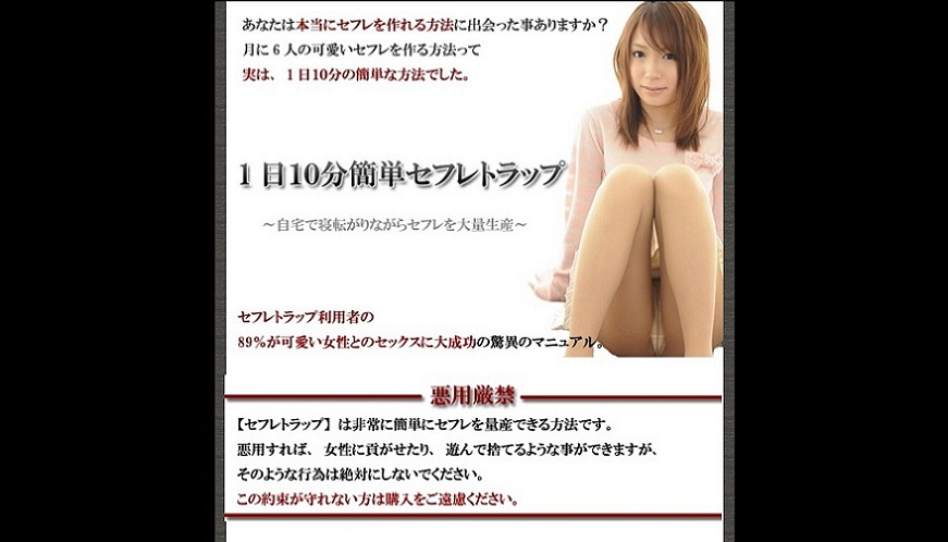 >> 1日10分簡単セフレトラップ〜自宅で寝転がりながらセフレを大量生産〜 <<